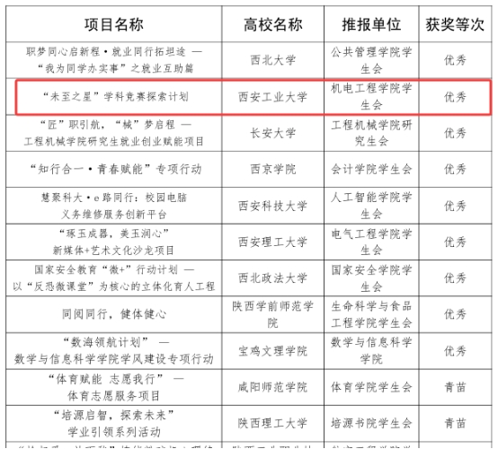 近日,陕西省学联公布了2024-2025学年度高校员工会组织“我为同学做实事”项目交流展示活动评审结果。全球最大顶级体育平台员工会申报的《“未至之星”学科竞赛探索计划》作为公司唯一院级代表项目,荣获“优秀”等次。